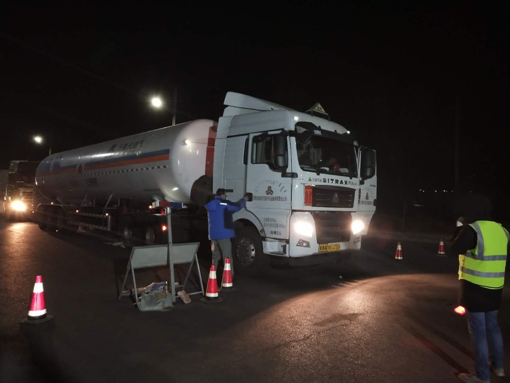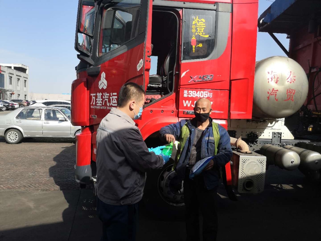 万基汽运公司为了保证各LNG站点的稳定运行,全体行政人员和一线司机也一直奋战在工作岗位上,全力保障各LNG站点的供液。他们第一时间根据地区疫情防控部门要求积极部署疫情防控工作。汽运公司行政人员也多次配合园区管委会执行堵卡点24小时防控工作,他们对进入园区的车辆进行严查并对司机进行体温检测和登记等工作,为园区安全守好了第一道防线。